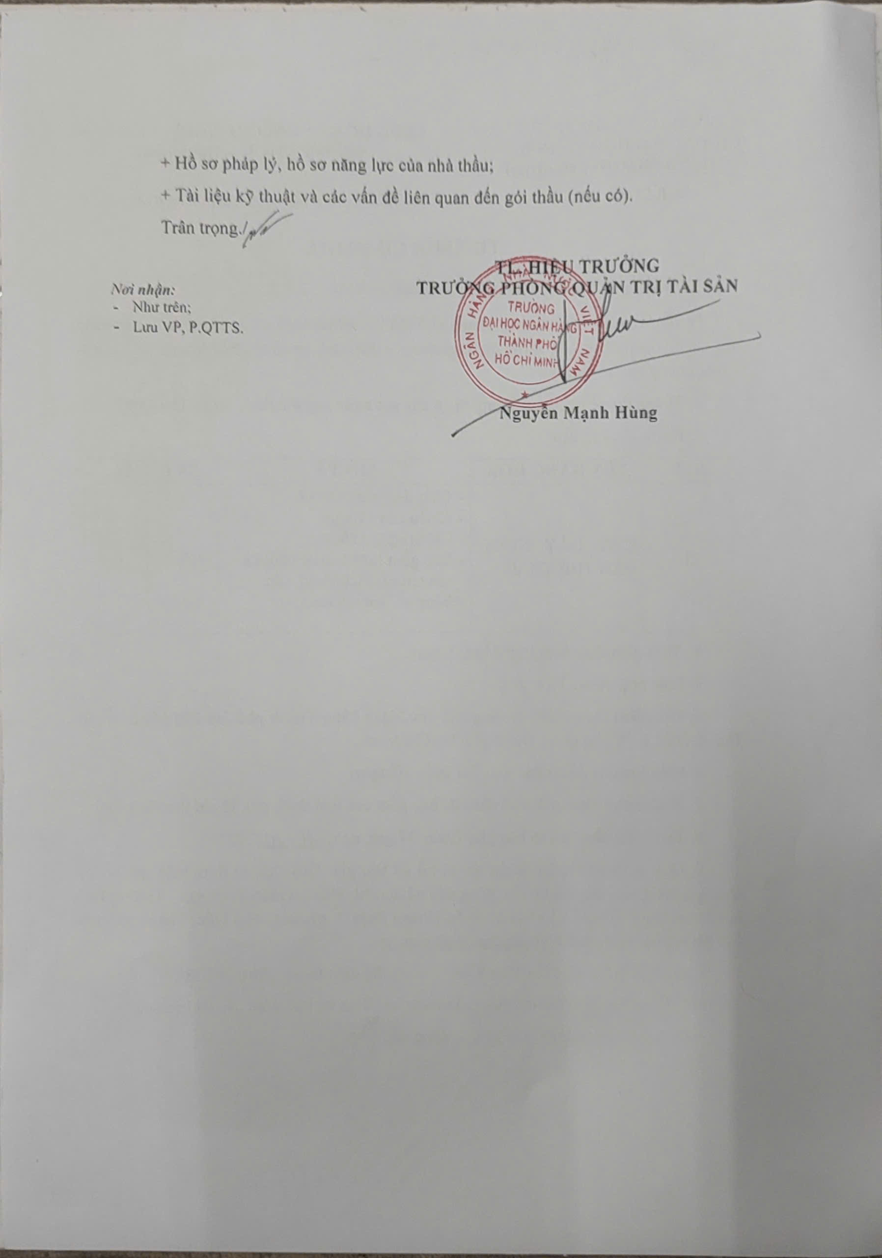 Thông báo số 1607/TB-ĐHNH về việc Cung cấp Tủ lạnh thay thế cho các phòng dịch vụ KTX Block A&B và khu K
