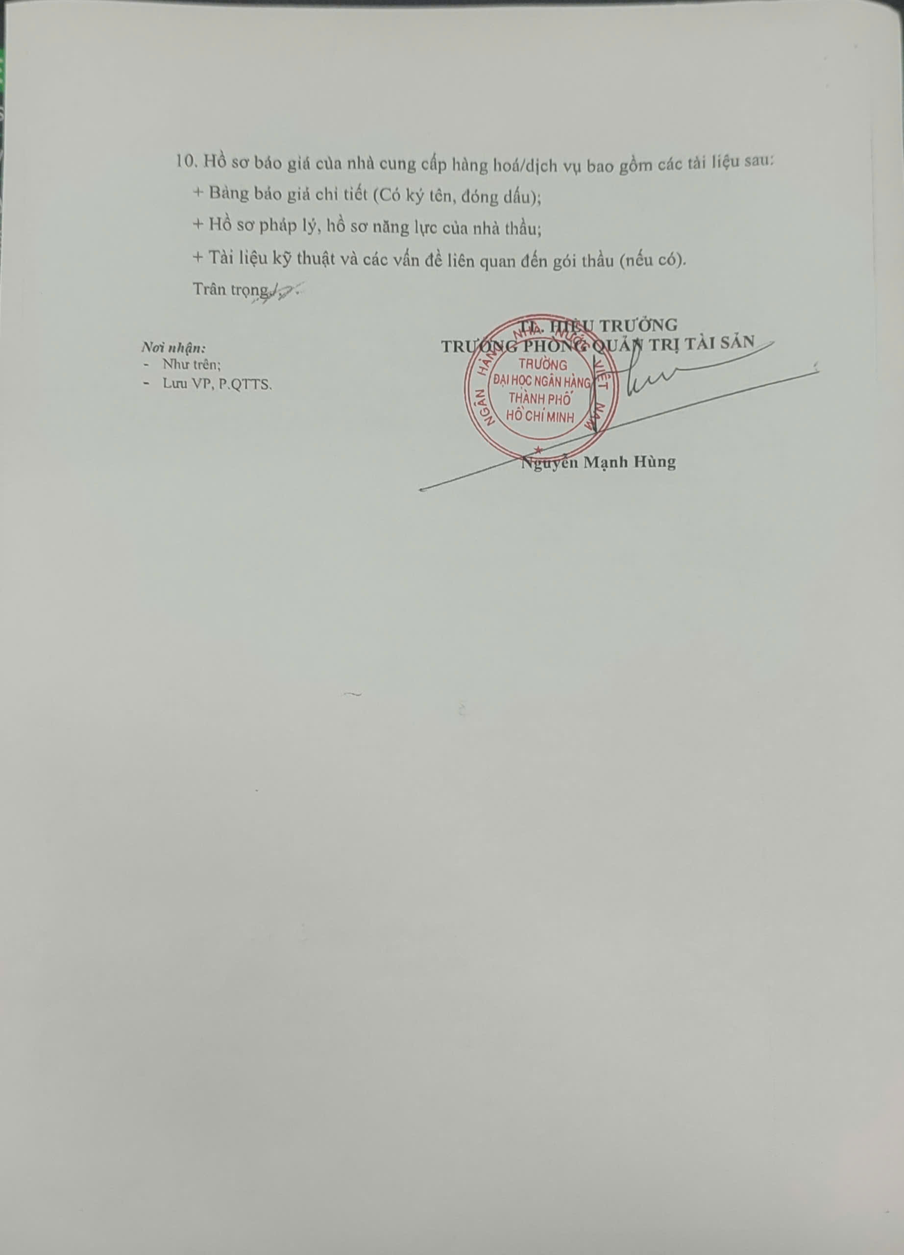 244/TB/ĐHNH về việc mời chào giá Sửa chữa thấm dột trần nhà tại kho bài thi tầng trệt và gạch ốp tường nhà wc phòng nghỉ giảng viên tầng 1, giảng đường C