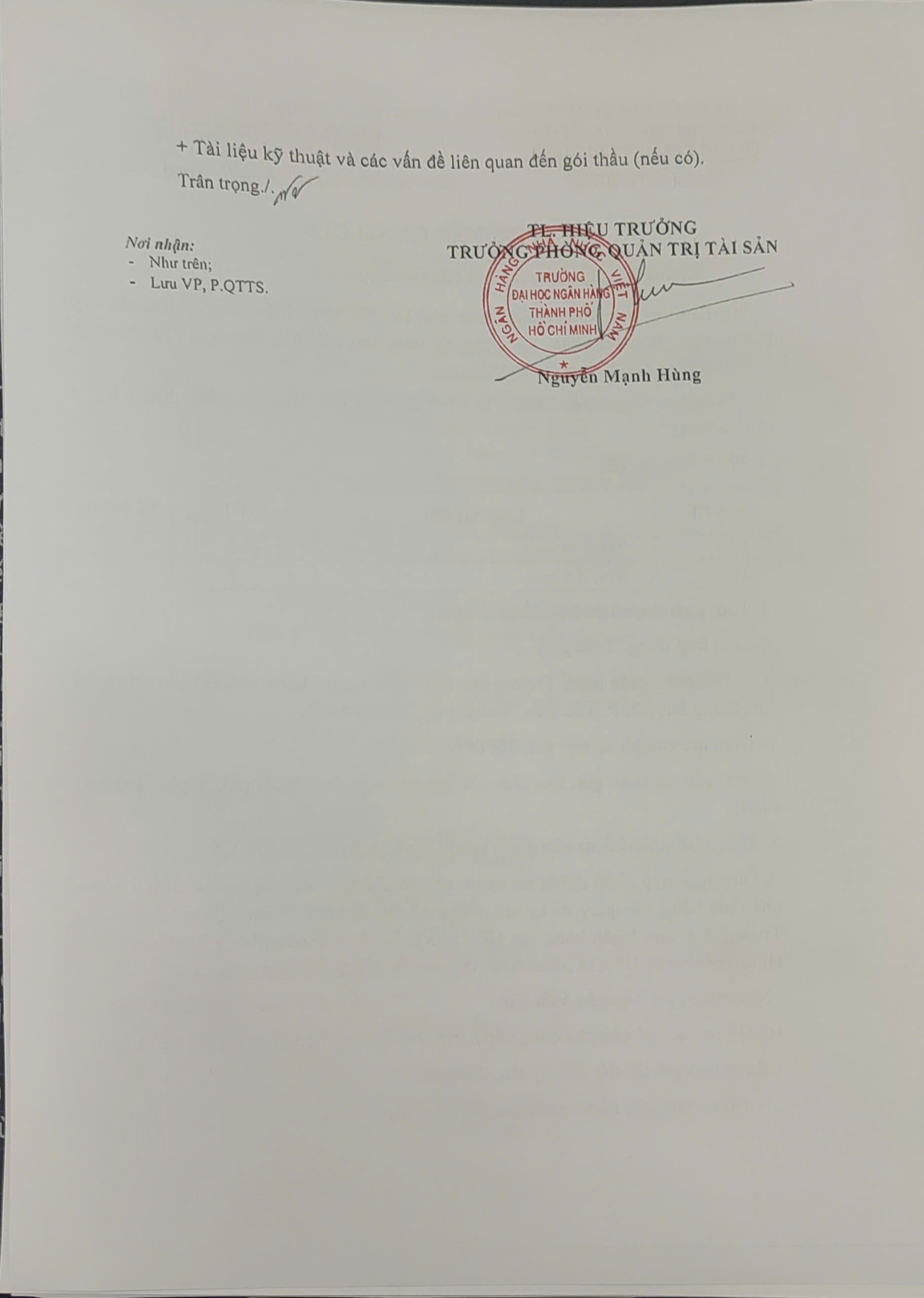 2023/TB-ĐHNH Về việc mời chào giá Sửa chữa máy chiếu cơ sở Thủ Đức