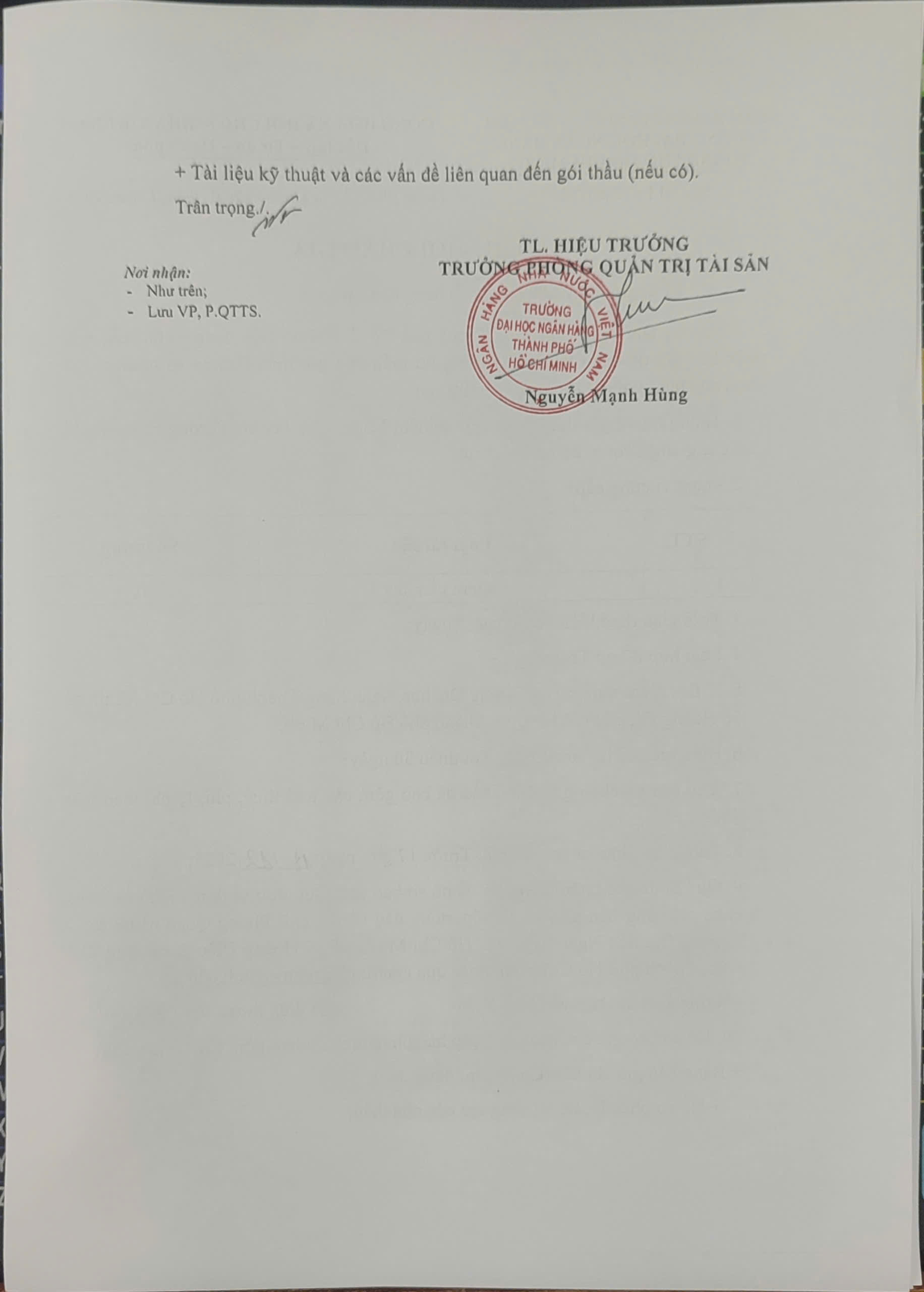 2023/TB-ĐHNH Về việc mời chào giá Sửa chữa máy chiếu cơ sở Thủ Đức